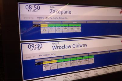 ワルシャワから電車で、クラクフへ。このように分かりやすい乗車表示なんだ...