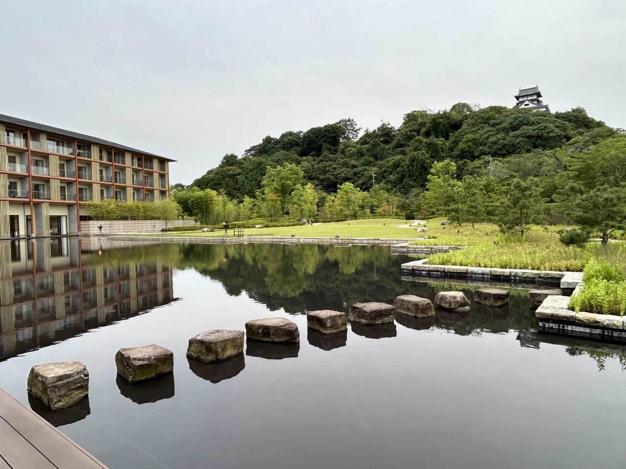 エントランスの竹がとても素敵。建物に入ると良い香り。大きな窓から池と庭と犬山城が見えます。お城ビューの部屋からは木曽川も見えるし夜は犬山城のライトアップも見える。温泉があって屋内外の湯船が気持ち良い。サウナもあります。まだまだ新しいホテルなのできれいだしとても快適に過ごせました。犬山城や城下町、木曽川鵜飼や木曽川の河岸散策など見どころもあるのでまた是非行きたいホテルです。