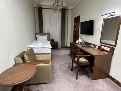 タシケントの老舗ホテルとの事だったのと着いた時の外観の印象で古さを覚悟しましたが入ったすぐのロビーは明るくてきれいだし、部屋も全てが古い感じでしたが水回りを含めて不便はありませんでした。スタッフの方も親切に対応してくれました。ホテル規模に対して朝食会場が狭い感じはしましたが、皆さんさっと食べて出て行く感じでした。お値段もお手頃だったので相応かな、と思います。