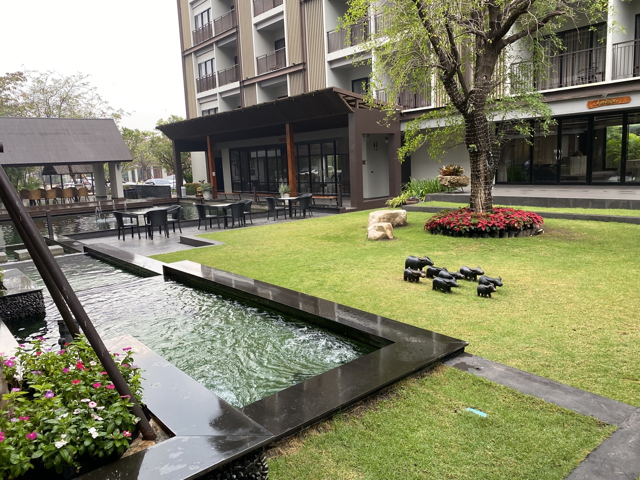 ホアヒンの美しいビーチ目当てだとちょっと残念かも。お部屋は何部屋かずつ独立した建物でコテージ風でとても素敵。テラスか2階だとバルコニーもあってお部屋も広くて快適。プールも広めで快適だけどビーチはない感じ。食事はおいしかったです。