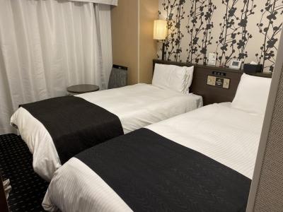 以前このホテルに最安値で泊まったら部屋中ベッドで埋め尽くされている!って思う位狭い部屋だったのですが、今回はツインを予約したので普通のビジネスホテル位でした。大浴場があるので快適です。コンビニも隣接して2軒。県庁前からは少し歩くけど雨の中でもまあまあ歩けました。スタッフさん同士の連携が微妙だと感じた事もありましたがコスパ的には満足です。