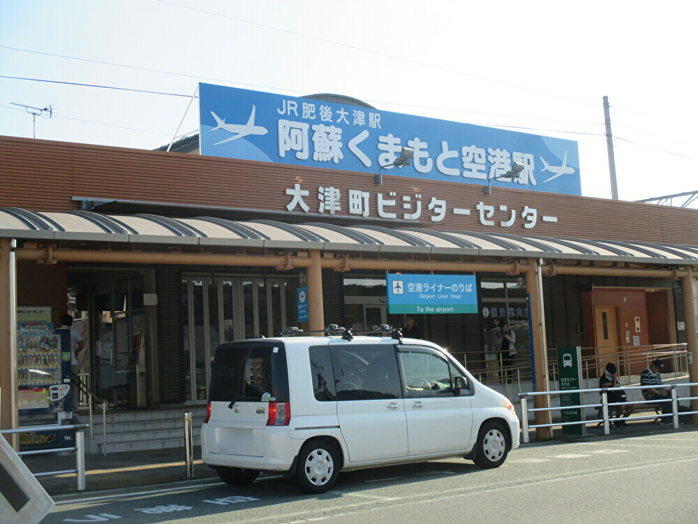 阿蘇くまもと空港から、無料で乗れる空港ライナーは、肥後大津駅南口に到着します。現在は、肥後大津~阿蘇間の豊肥線が運休しているので、阿蘇方面に向かうときは、同じくこの駅の南口からバスに乗ることになります。利用しませんでしたが、観光案内所も併設されています。北口方面に行きたいと言えば、駅構内を通してもらえます。ちなみに、交通系ICカードにチャージしたい場合は、北口に設置されている機械を使う必要があります。