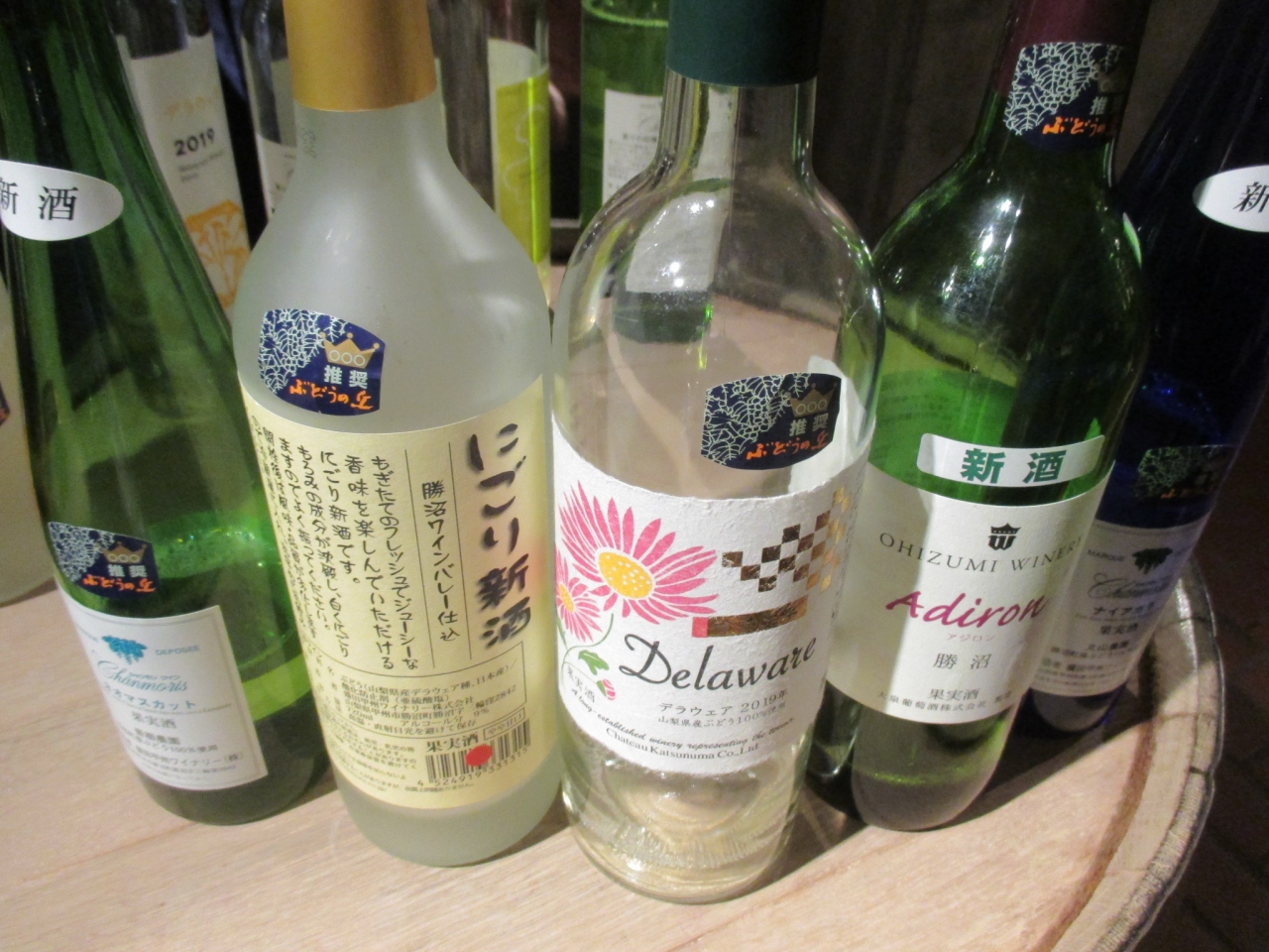 通常5種のワインが自由に試飲できます。それ以外にノンアルコールのぶどうジュースなども。ここには大型バスが次々に訪れます。お土産物も充実していて、ホタテの甲州煮がお勧めです。