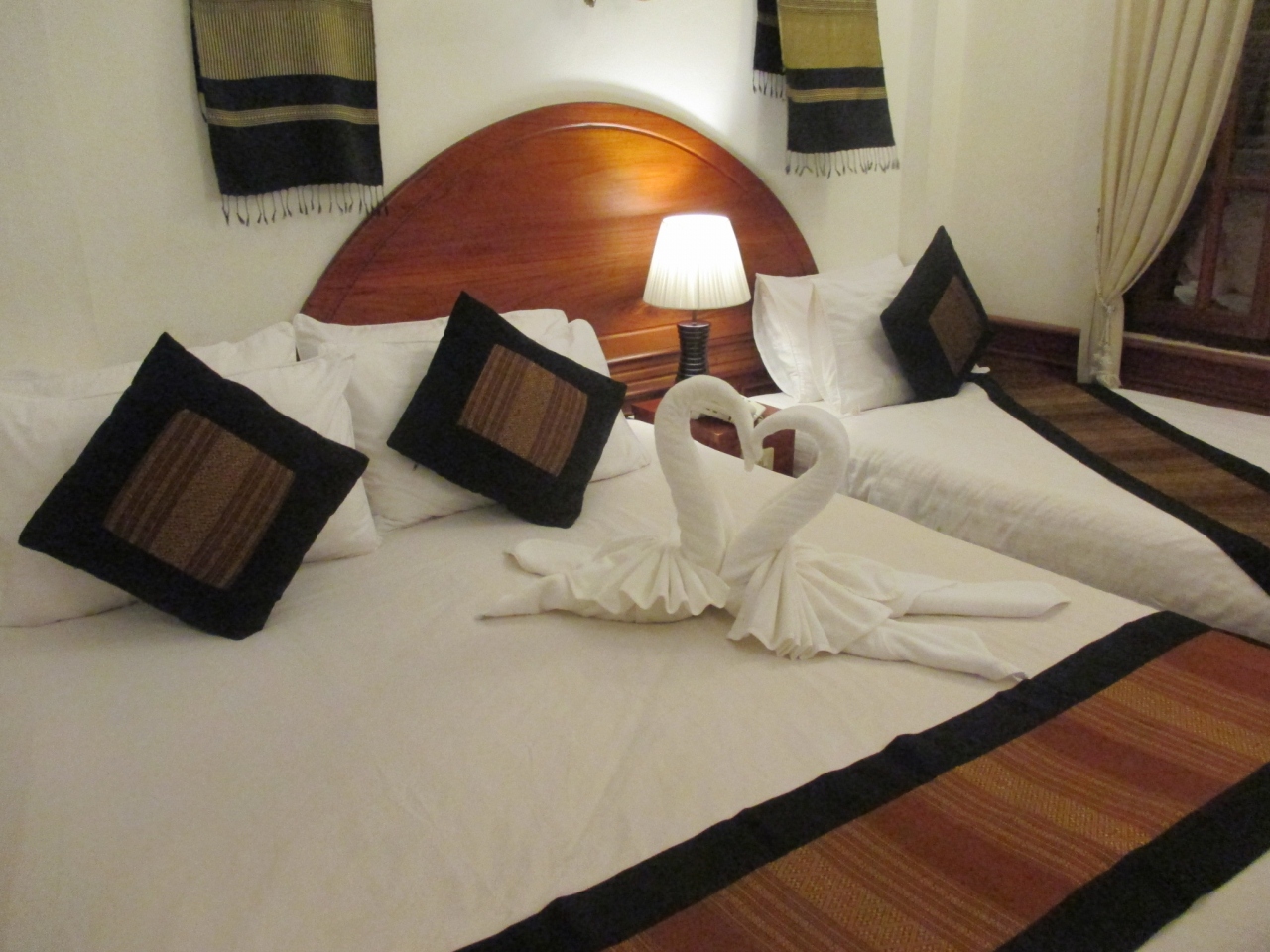 首都ビエンチャンにありながら、一歩足を踏み入れると、ほっとした空間が広がります。建物外観はラオス伝統的な高床式で素敵。でも室内は普通です。シャワーとトイレの仕切りがないので、ビショビショになるタイプです。でも、その辺りは慣れとお好みで。値段も安いので、基本的にはお勧めです。