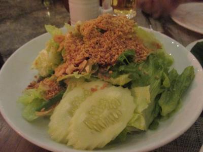 ルアンパバンに夜、到着したので、宿から近く、雰囲気もよさそうだったこちらの店に入りました。名物とされる、川海苔や水牛のソーセージなどを頼みました。初めて食べるラオス料理に期待は高まります!