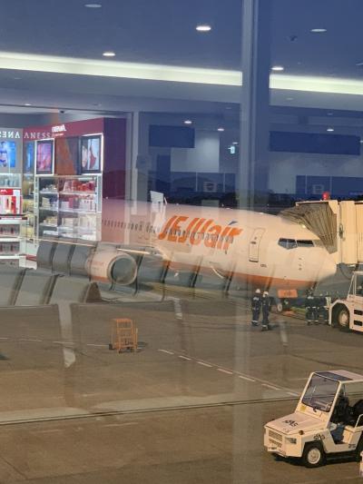 月明かりがきれいだったけど、うまく撮れず。仁川には定刻より早着。イミグ...