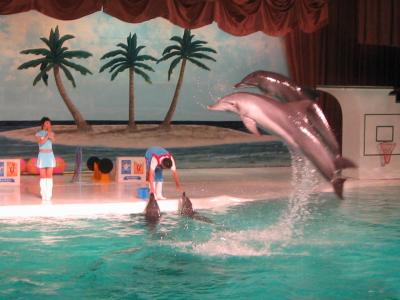 <パシフィックランド>第三部でイルカショー。高くジャンプしてましたよ。