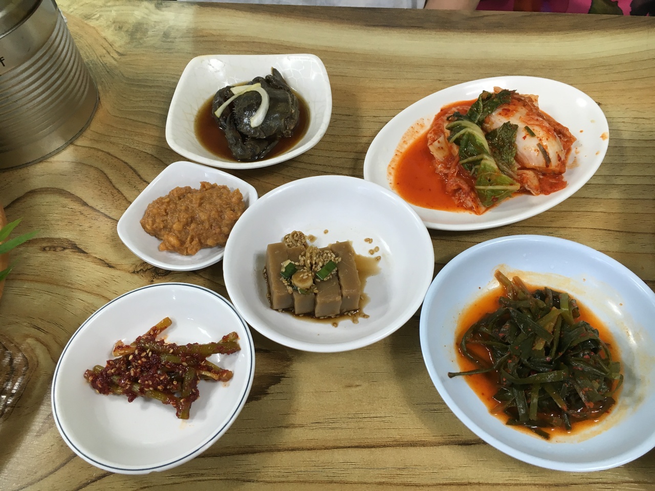 日本で言う茎ワカメと、たくあん、豆もやし、キムチ。