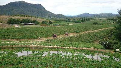 - 一面のブドウ畑と、象の散歩は見てるだけで楽しい。