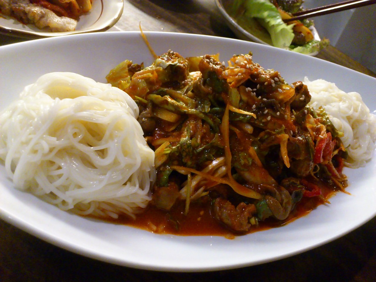 もちろん、おかずもサムギョプサルのサンチュ、えごま、キムチ、ねぎは最初からドン!と盛られてきますが、お代わり自由。