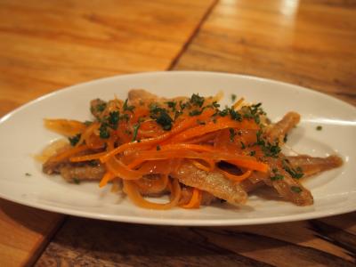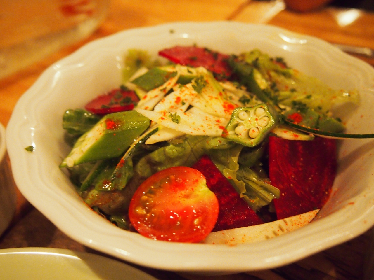 和風な感じのお店ですが、レバーパテや、パクチーサラダ、牛スジの赤ワイン煮など