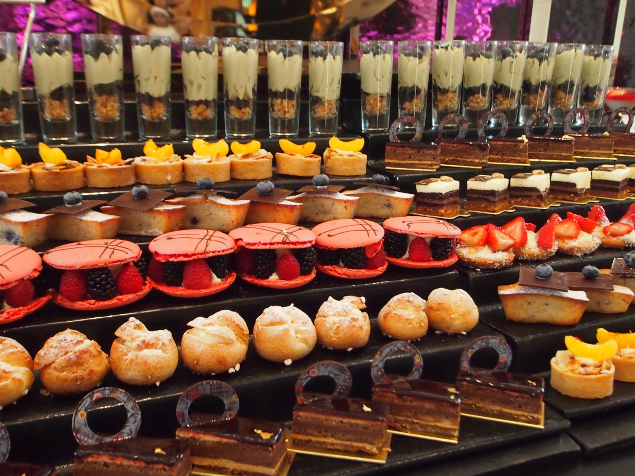3段トレーは運ばれてきましたが、スイーツはブッフェ台から自由に取る形式。