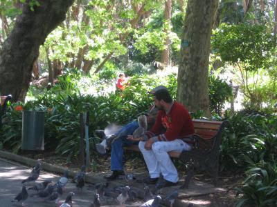リスや小鳥などが来ていて、一緒にゆっくりと和む現地の人が心癒してくれる。