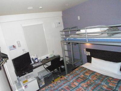 夕顔瀬橋の袂に建つ、隣のマックスバリュは24時間営業。部屋に電話無し。シングルユーズですがダブルベッドの上にシングルベッドが載ったタイプの部屋でした。加湿器・空気清浄機・湯沸し・冷蔵庫などあり。