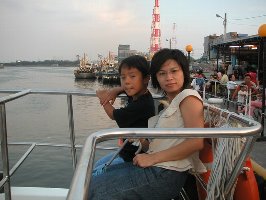 観光遊覧船があります。70分の外海コース350元、25分の内湾コース100元。夕方で客足が落ちていたせいでしょうか、客引きの女性(船長の太太かな?)に「値段の質問」をしたら内湾コースで子供無料にしてもらえました。ペイリェンシーや水面を跳ねる小魚、巣に群れ飛ぶ(椋)鳥が見られます。下記参照。