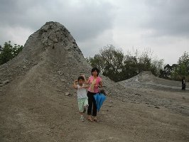 高雄県師範大学の裏。火山と言うから熱いかと思っていたのに冷たい。「泥泉」じゃ観光客が来ませんね。ポムポムあぶくが出て、火気厳禁と書いてありますけど湧出するガスは無臭でした。掻き回したり突き崩したり身を乗り出して遊んでいるといきなりブジャッと大きな泡が弾けて魂消ます。ぜひ固まりかけた泥に片足突っ込んで特異な材質を実感してみましょう。ただし駐車場のトイレは水が出ないし、付近に足を洗えるところはありません。22号線真直ぐ行って里港で豚足を食べて帰りました。