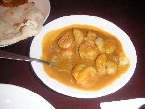 辛さはだいぶ控えめで日本人でも子供でもok。主食はナン又はライスが選べます。ナンメニューの2番目のバターナン(うろ覚え)はすごく薄いパリパリ煎餅(青唐辛子ソース付き)で食べ応えが無いので避けましょう。ガーリックナンがお勧め。写真は蝦カレー220元。カレーひとつタンドリーチキン(4本220元)とナン2種ビール2本で2人分700元程度。ご飯だとカレーは2つ頼まないと足りないよ。