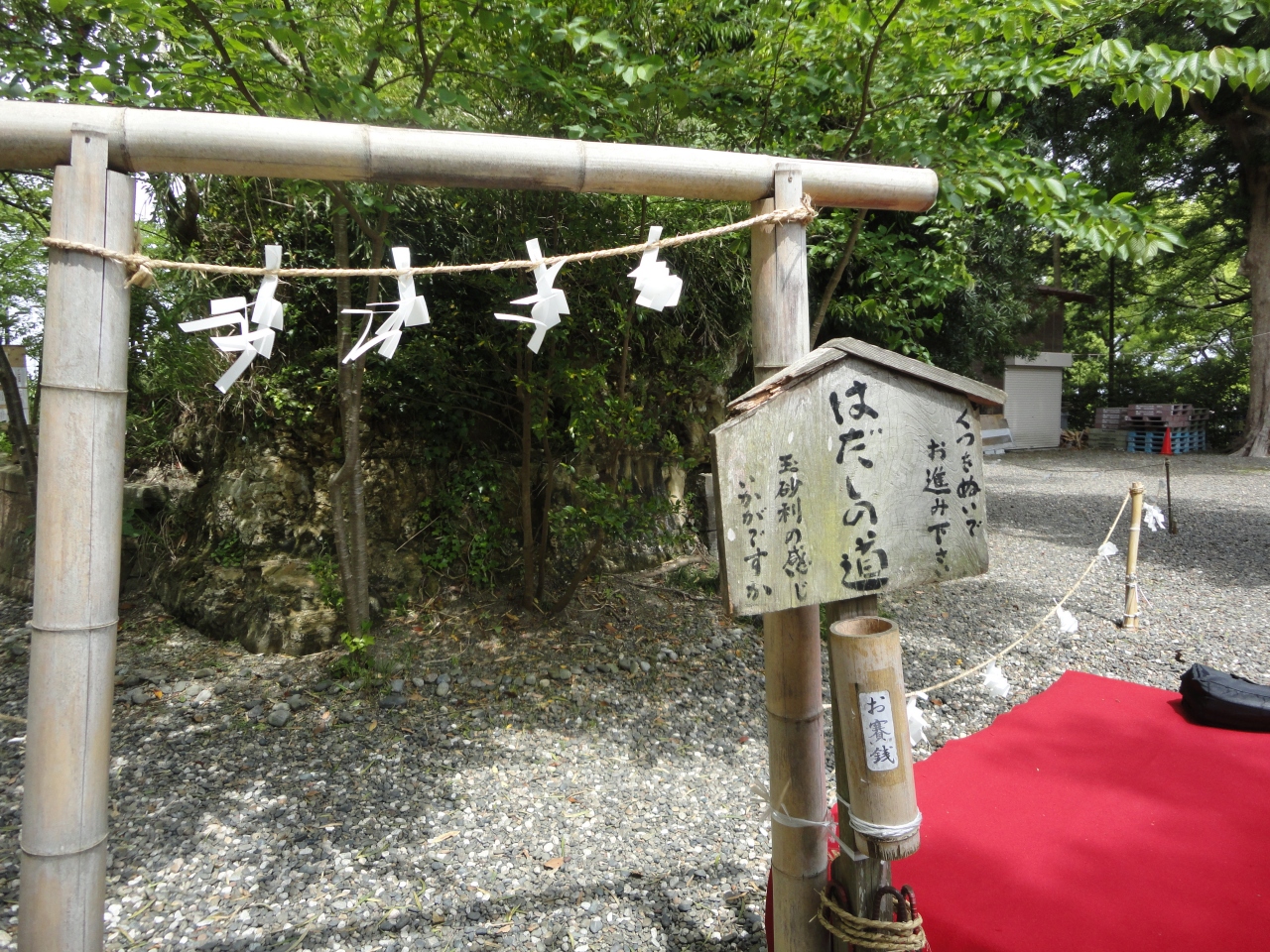 改築中らしくて賽銭箱の後ろは拝殿内部の写真だけ。幸せそうな笑顔の狛犬は珍しい。ご神水が汲めるので入れ物を持って行きましょう。上総一ノ宮だけど、あとははだしの道で足裏マッサージするくらいしかやることは無い。すぐ近くの観明寺の方が見所あるな。