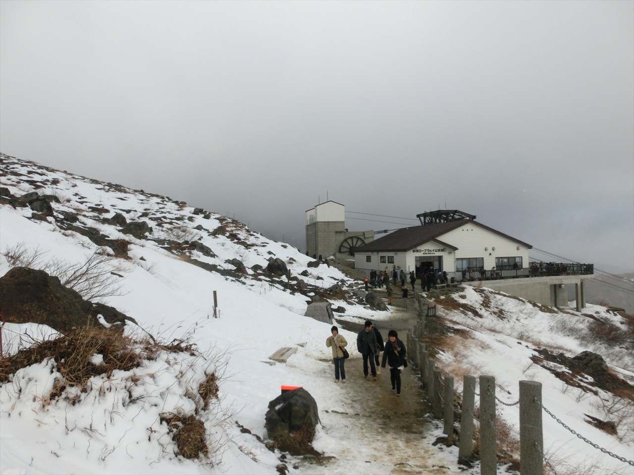ロープウェイは30分ごとですが、乗り切れないときはすぐ臨時便が出るようです。山頂駅から40分ほどで茶臼岳山頂へ登れます。雪の日でも。