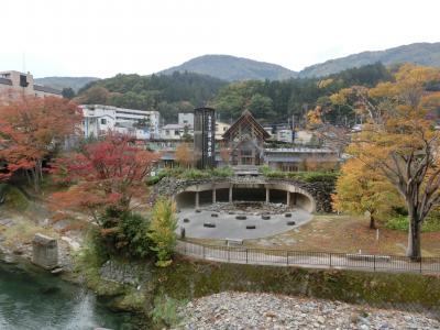 通常7000円を期間特価6000円で利用。温泉街からは少し離れているが川沿いの歩いて紅の吊橋やもみじの湯に行ける。妙雲寺の正門は閉じていても裏から墓地に入れて奥に温泉神社・百観音への登口あり。深夜入浴不可。夕食70分・朝食40分の入れ替え制でチェックアウト9時半と少し忙しい。