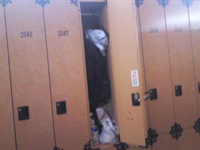 ロッカーは縦1m横20?奥行50?位。旅行荷物は有料ロッカーに預けられる。