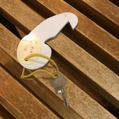サウナ利用者に渡される鍵キーホルダーがサウナ室を開ける鍵になりますサウ...