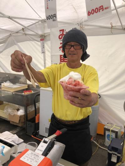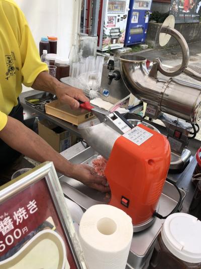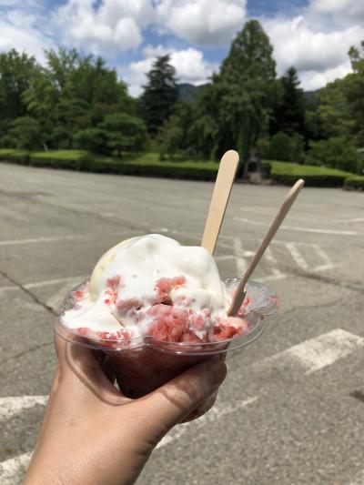 前日までの雨とは打って変わり、この日はとてもよく晴れた暑い一日でした。上田城跡の入口のフードスタンド“ずくだせ農場”さんの“いちごけずり”絶品でした(600円)。冷凍イチゴ100%で作ったカキ氷、イチゴの酸味とトッピングのバニラアイスと生クリーム(私はクレープは外してもらいました)の甘さが絶妙でした。使用しているイチゴは“ずくだせ農場”さんで採れたものです。