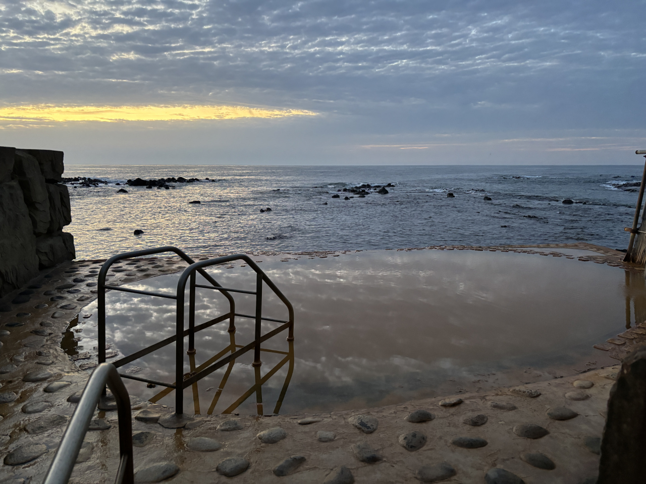 それでも、日が沈み始めて暗くなるまで40分位の時間、まったりと入浴ができて最高でした。とにかくお天気に左右されますが、素敵な景色が見れて大変幸せでした。日没が過ぎると安全の為か入浴できません。朝ぶろはOKです。