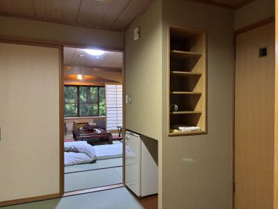 お部屋は昔ながらの和室12畳程度の広いお部屋、広縁からは森のような景色が見れました。