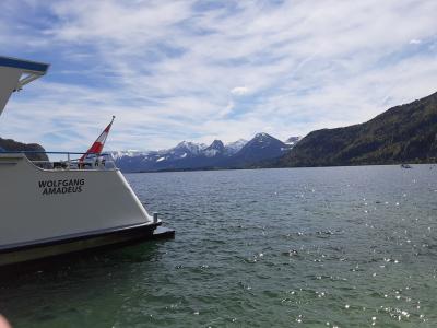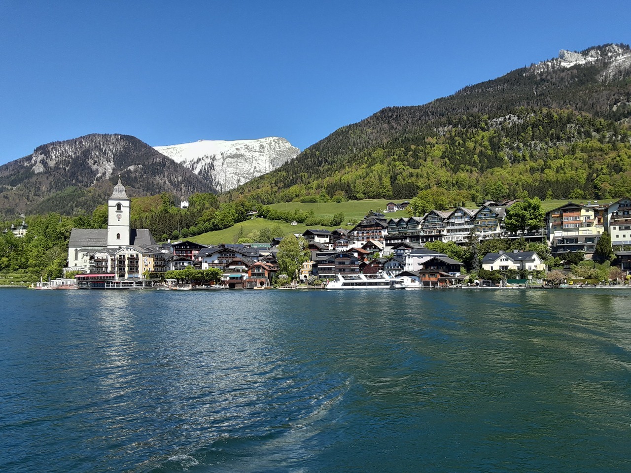 お天気が良ければ船からの景色は絶景てす。ザンクトギルゲンからヴォルフガングまでは40分、ヴォルフガングからシュトローブルまでは15分。山が近くなるのでこの景色も美しい。シュトローブルはあまり観る所がないので船を楽しむ感じですが……