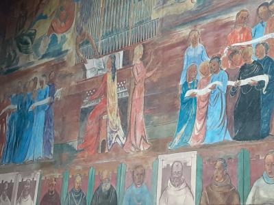 チロル地方は、ローマからドイツ方面に宣教に行く為に通る重要性な場所。想像ですが、この地に宿泊し信仰が伝えてられて、守られてきたのだと思います。ヤコブは、キリストの12人弟子の中でも、特に選ばれてキリストと共にいた時間が長い弟子です。スペインの巡礼教会サンティアゴ(ヤコブ)デ コンポステーラも同じヤコブを現しています。