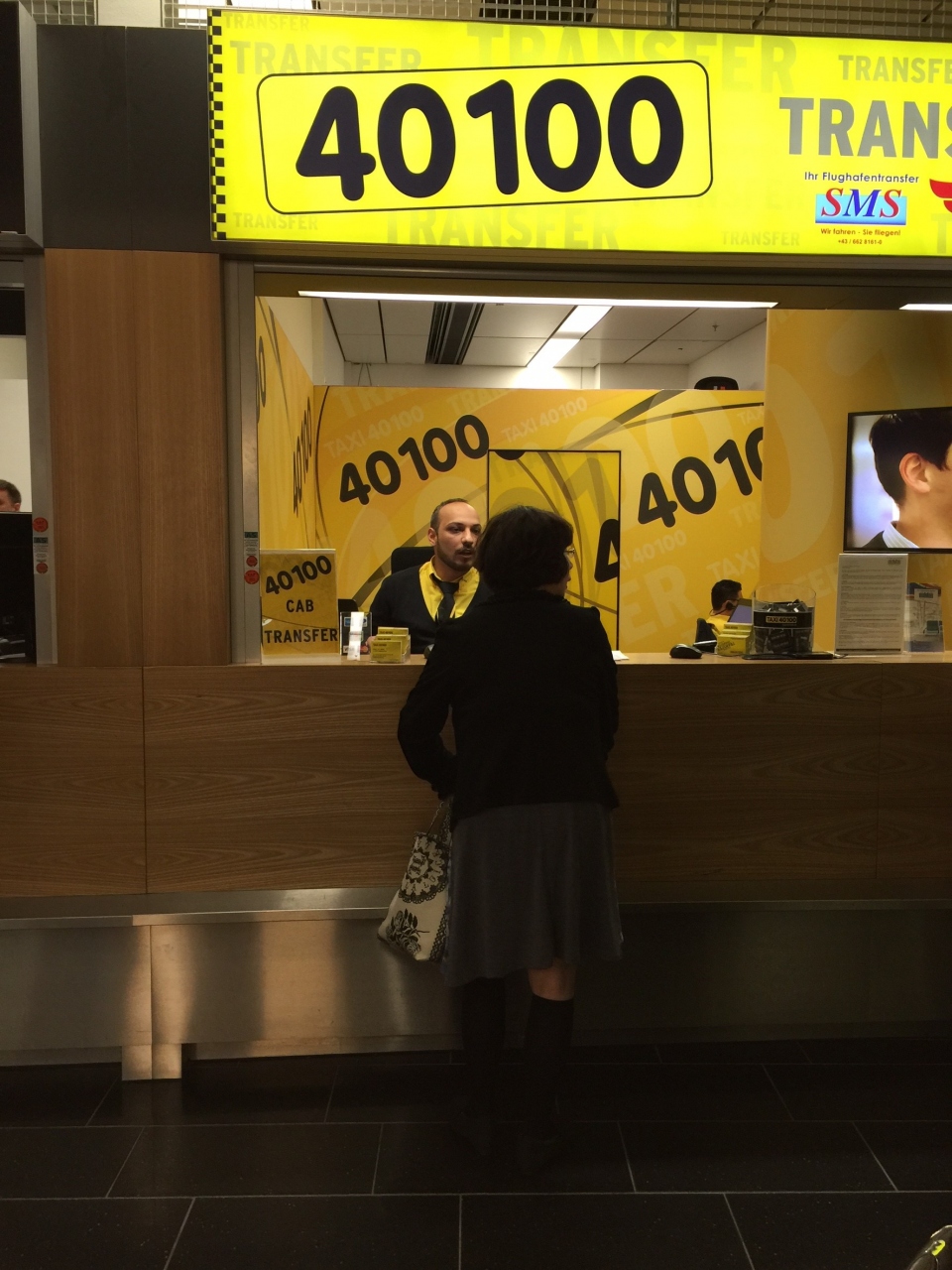 空港からタクシーでホテルへ行く場合、リムジンタクシーがお得です!会社は色々あり、タクシーや値段のランクが違います。システムも年々変わります。私が利用した会社は、市内のホテルまで、36ユーロ(2016年4月)ホテル到着時に、ドライバーに払いました(以前は、予約時に払っていました)3人で大きなトランクも3つあり、6人乗りの大型タクシーでしたが、値段はおなじでした。なので、帰りもドライバーに直接予約したら、きちんと来てくれました。3人以上ならリムジンタクシーが便利です!
