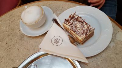 ケーキが3.3ユーロ メランジェが3.2ユーロ