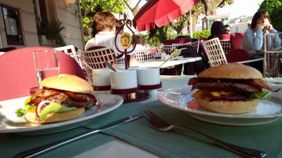 今回は軽食で ハンバーガーと ザルツブルガーノッケル ソーダバッサー 紅茶~
