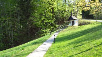 住宅街にあるのでタクシーで行きました 殆どの客は車です トラップファミリーの歴史に思いを馳せ感慨深い体験が出来ました トラップ家がアメリカに行った後はナチスが使い戦後は神学校になりchapelも再開~そして現在のホテルになりました- 旅行時期