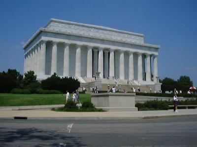 リンカーン記念館中には、リンカーンの坐像と有名なゲティスバーグの演説文...