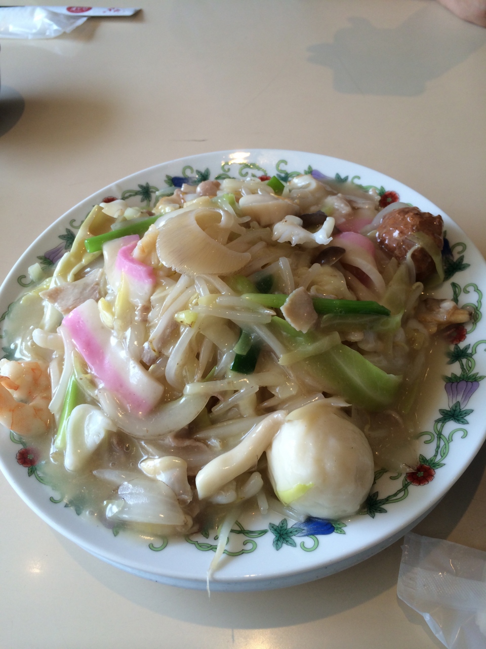 私達は ちゃんぽんと皿うどんを注文。せっかくなのでフカヒレの入ったものにしました。