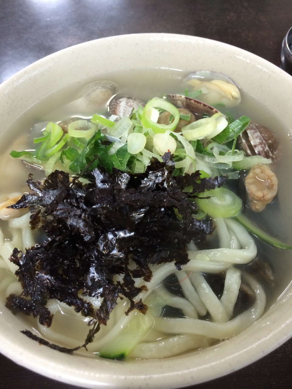 麺は日本のうどんのようでした。海鮮という大量の貝が入っています。おだしふが出てて美味しいですが