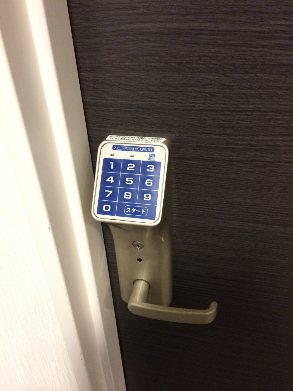 お部屋の鍵は自分で暗証番号を設定するタイプで、いちいち鍵を鞄から出さなくていいので楽です。