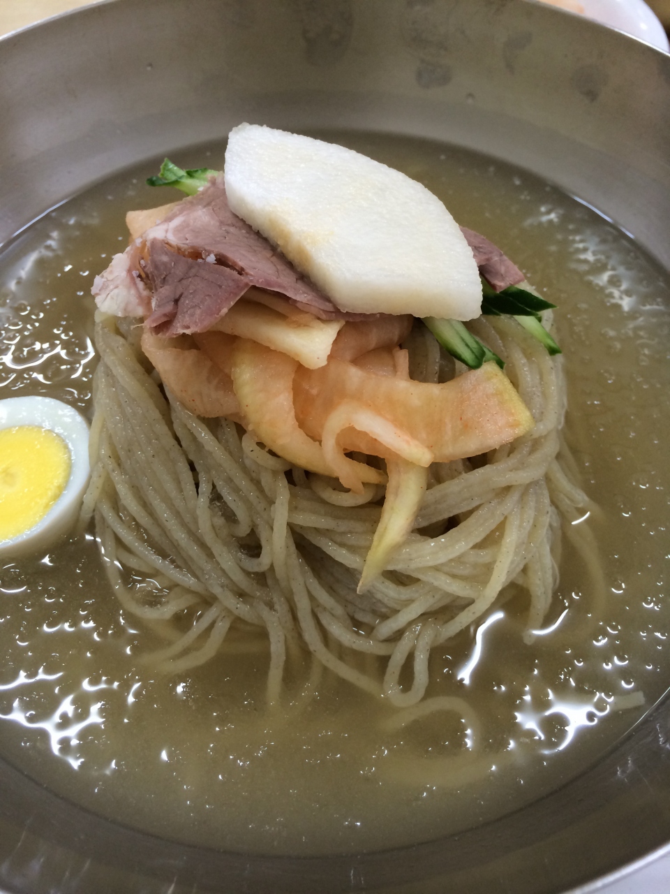 1人なので冷麺しか頼めませんでしたが、チヂミとゆでたお肉を頼んでいる人が多かったです。
