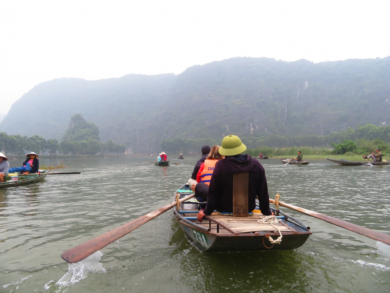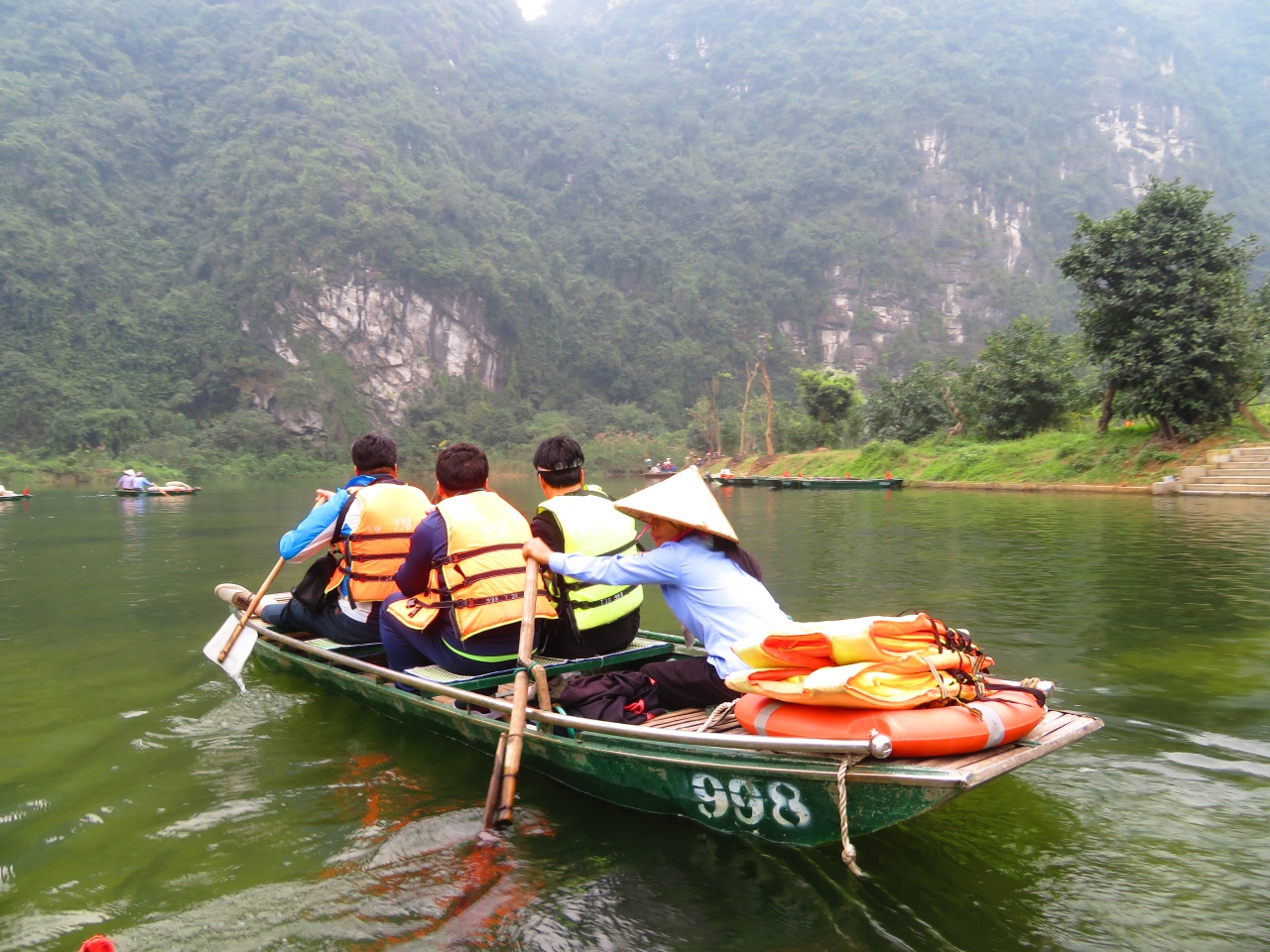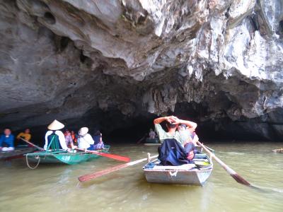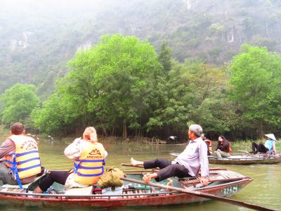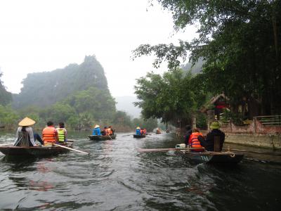 タムコックは、まわりは水田ですが、チャン・アンは、山水画のような風景の中の水路です。タムコックは、足こぎですが、チャン・アンは手こぎ。タムコックは、漕ぎ手は男女半々くらいですが、チャン・アンは、ほとんど女性。- 旅行時期
