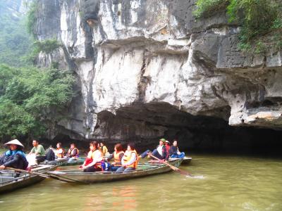 ここは比較的新しく開発された所です。タムコックの場合は、ガイドさんから降りる前に、漕ぎ手さんにチップとして。1ドルまたは20000ドン払って欲しいと言われましたが、ここでは、ガイドさんから何も言われませんでしたし、漕ぎ手さんからも要求されませんでしたし、自分達の船以外にも、まわりの船を見ていても、チップを払っている様子はありませんでした。