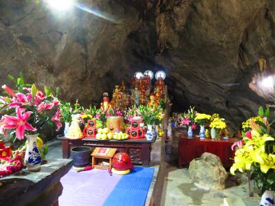 タムコックの洞窟は真っ暗ですが、こちらは、明かりがあり、洞窟内でも写真が撮れます。また、タムコックの洞窟より低く、狭く、しっかり前を見ていないと、頭がぶつかりそうになるところがありました。