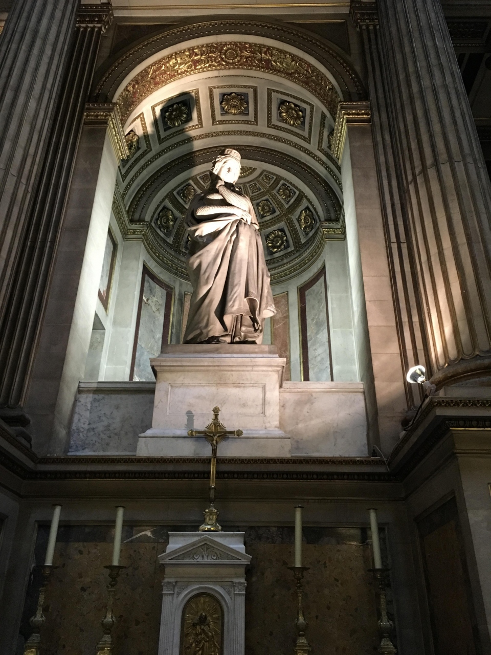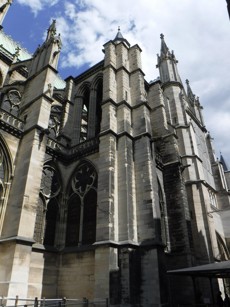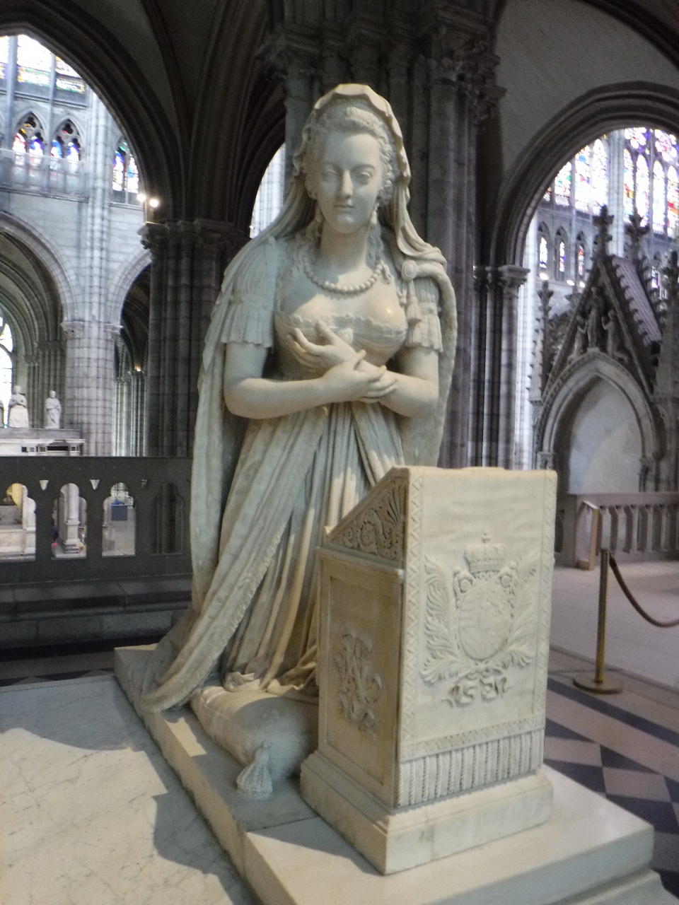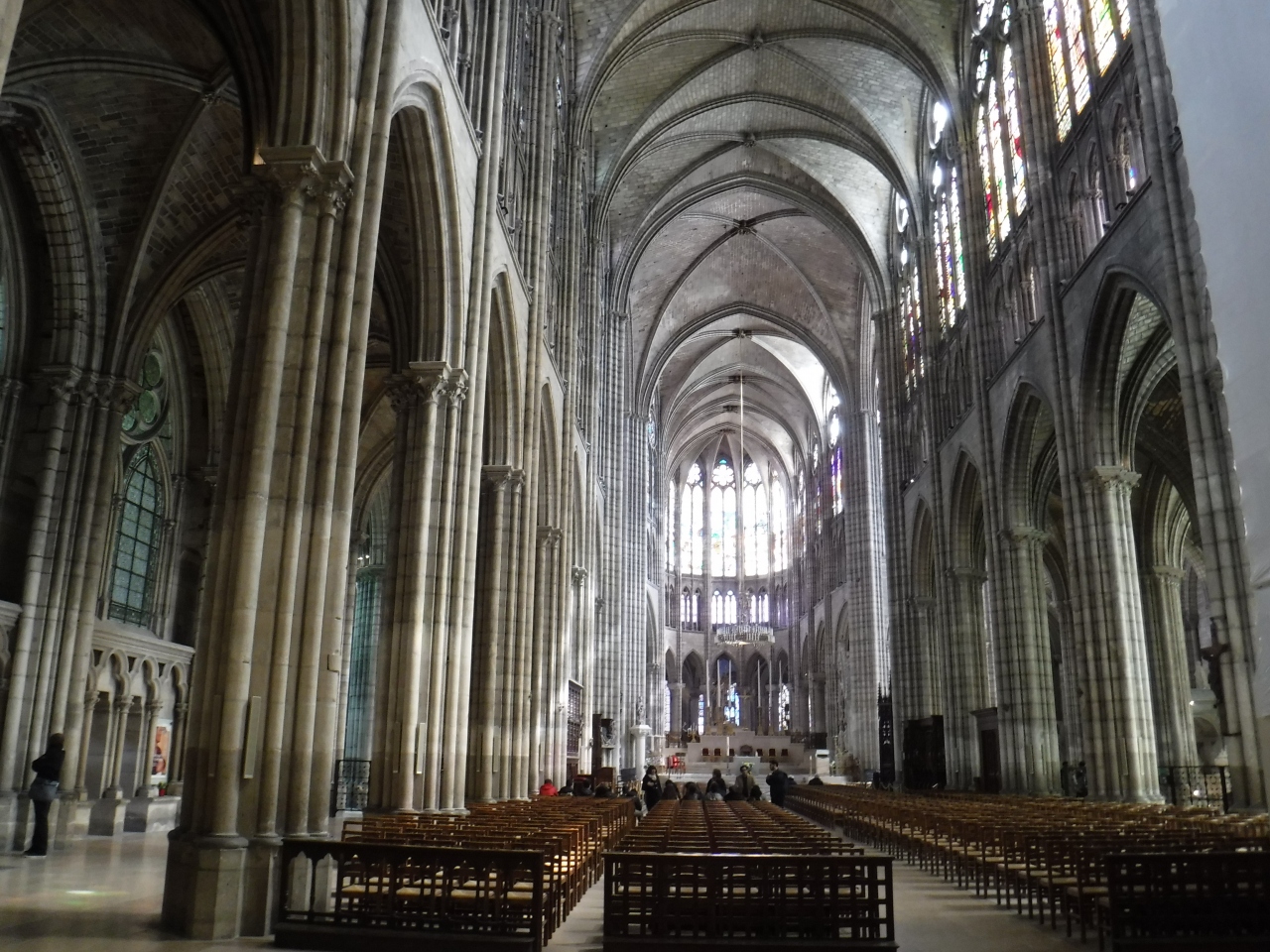 地下鉄のサン・ドニ駅は3つあり、大聖堂の最寄りは、終点1つ手前の、Basilique de St-Denisです。地下鉄を出るとカルフールもあるショッピングモールで、そこからパリ方向に歩いて1分程度戻ると広場に出て、大聖堂です。