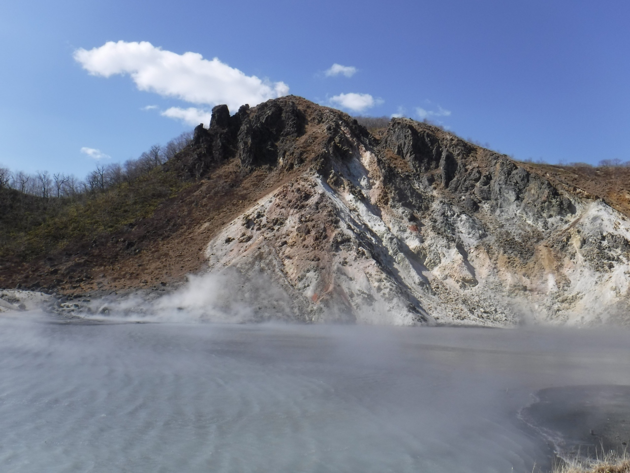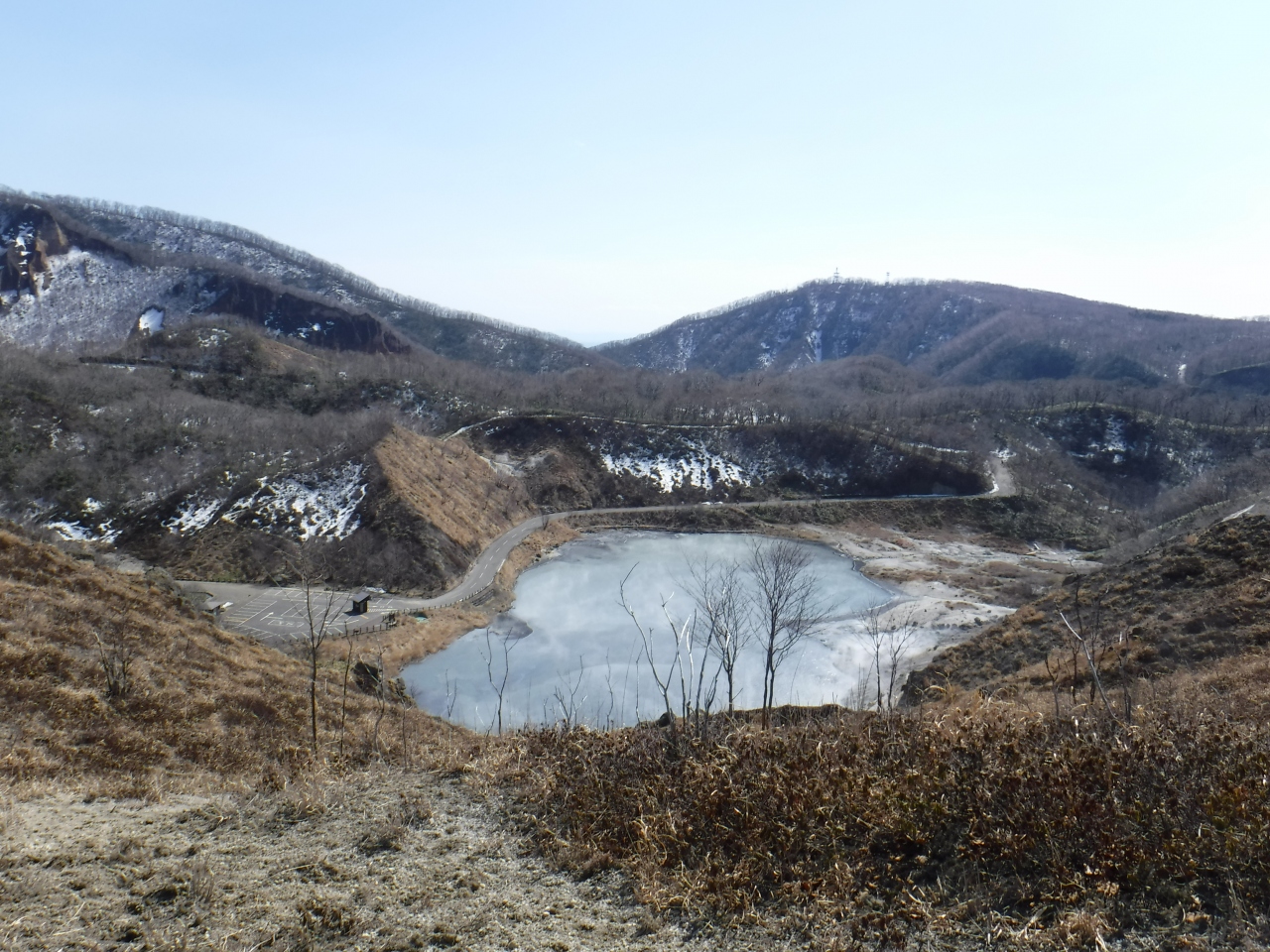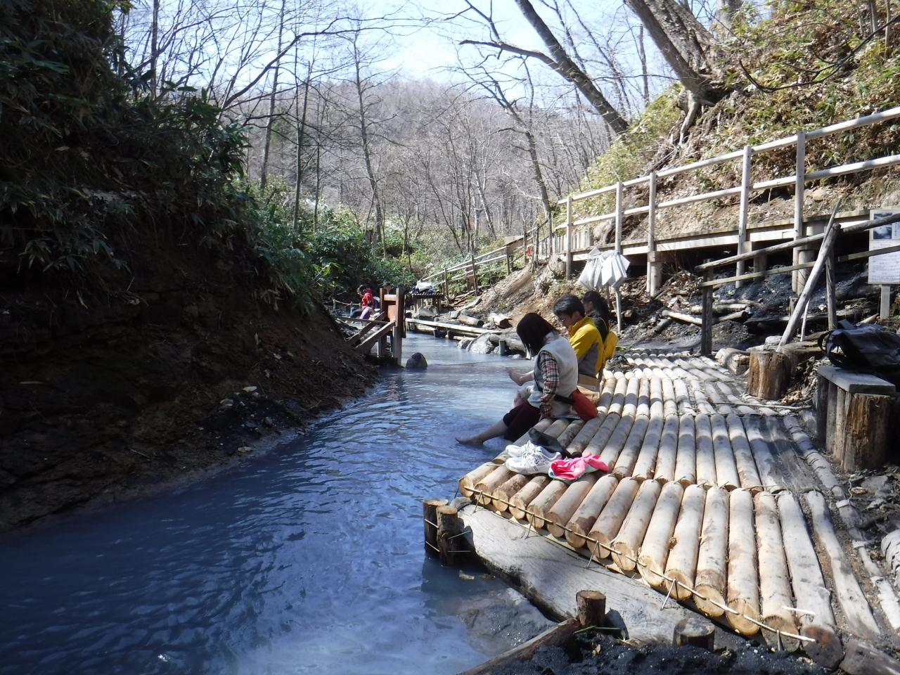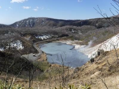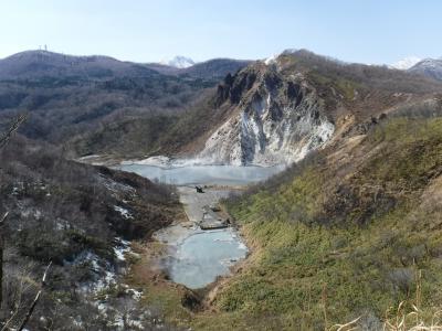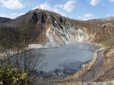 2017年4月10日道路も開通していないので、登別温泉から歩いて行きました。