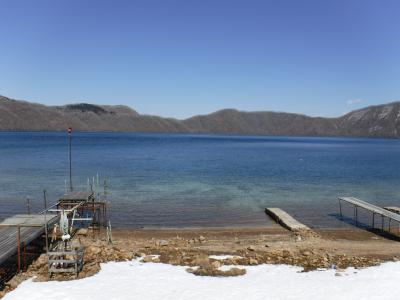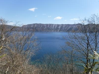2017年4月10日歩いて、誰もいない倶多楽湖に行きました。積雪が有り、車では行けません