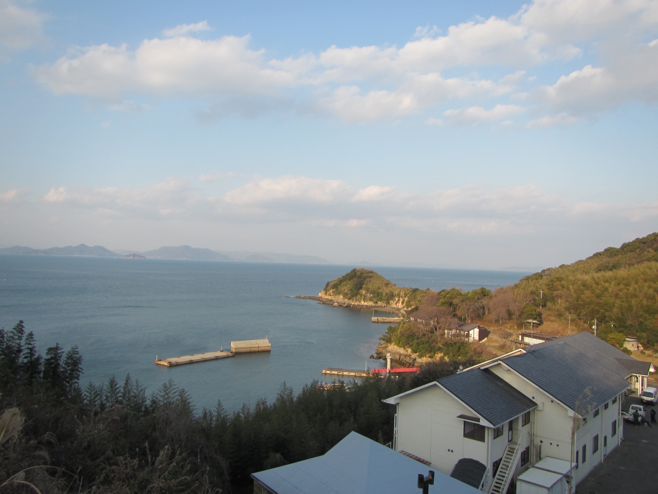 香川県直島の近くにある豊島(てしま)とちがいます。ここは、愛媛県の豊島(とよしま)です。人口は2人という噂がありましたが、聞けば、0人ということです。実際、ここで暮らしている人はいません。豊島コミュニティセンターというスポーツも楽しめる宿泊施設が1軒あります。島の展望台は、景色が良いです。海岸線以外の島の道は、草が生い茂って歩くのが困難ですし、その道も、森の中を歩いているだけで、景色の良いところはありませんでした。