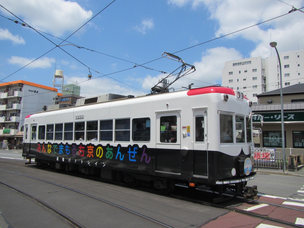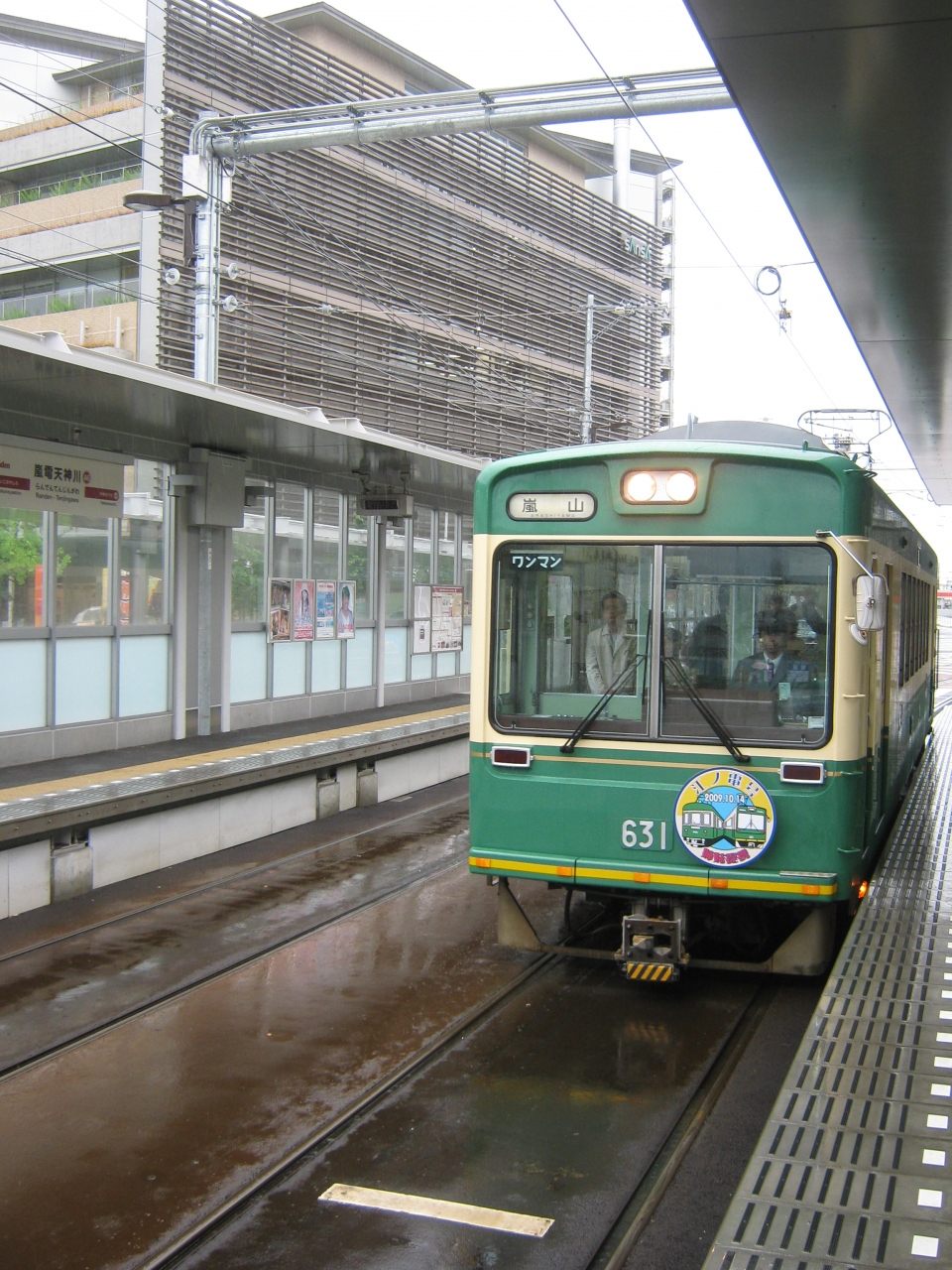 嵯峨野への交通機関として有名ですが、途中にも、名所がいっぱいあります。北野天満宮・上七軒歌舞練場・妙心寺・仁和寺・龍安寺・等持院・広隆寺・映画村・車折神社・壬生寺・・・。正式名称は京福電鉄です。運が良ければ、パトカーならぬパトトレインに乗れるかも知れませんよ。