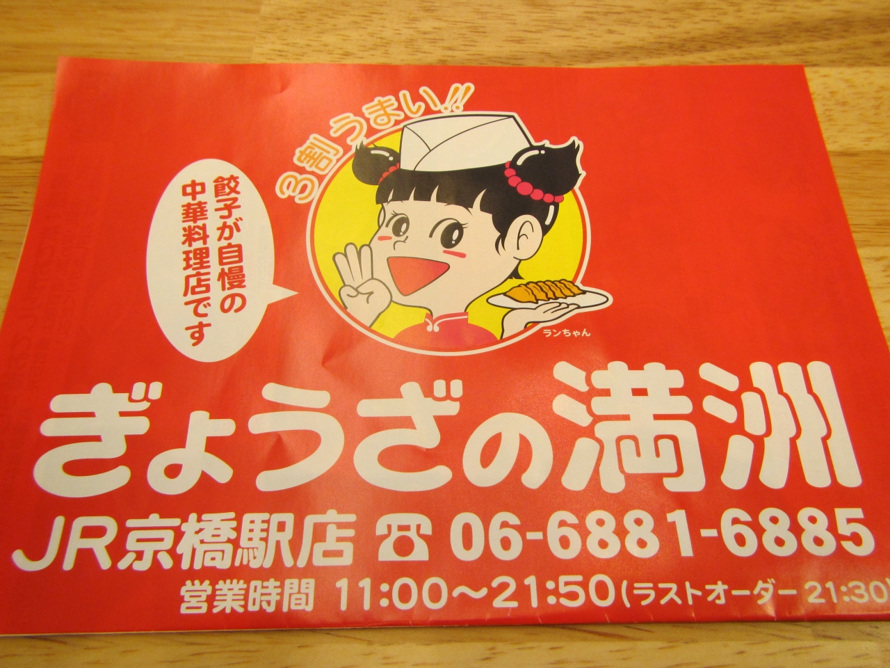埼玉を中心に出店している ぎょうざの満洲が突然、大阪に殴り込みです。餃子は、皮の厚い関東風です。大阪で受けいれられるでしょうか。場所は、JR京橋駅北側の改札を出て右側に回り込んだところです。何回か行きましたが、出てくる速さや美味しさは合格点です。特に、タンメンがおいしいです。炒飯、大盛りのにしても量が少ないのは✕です。