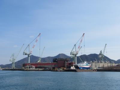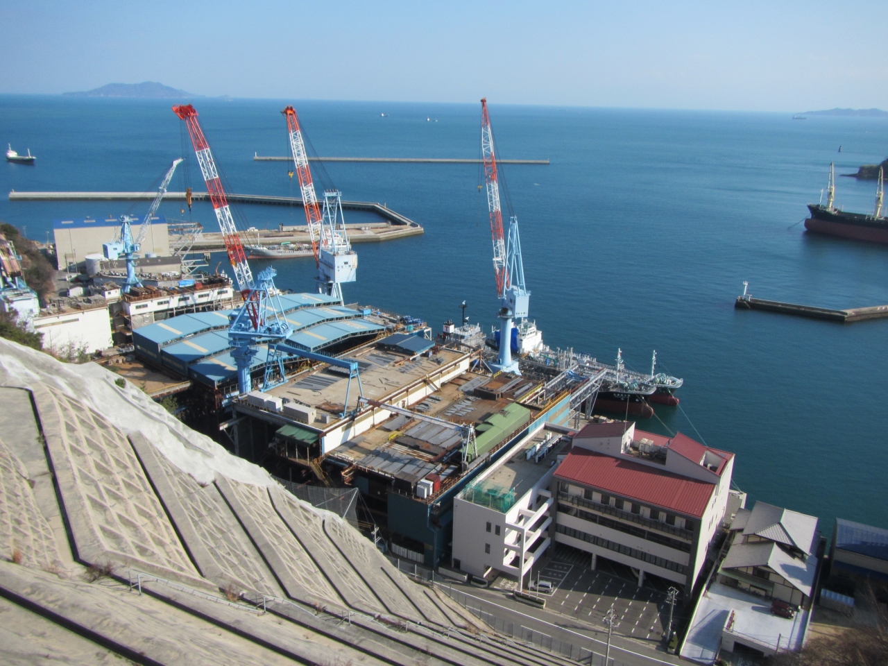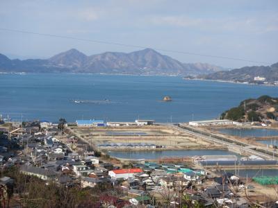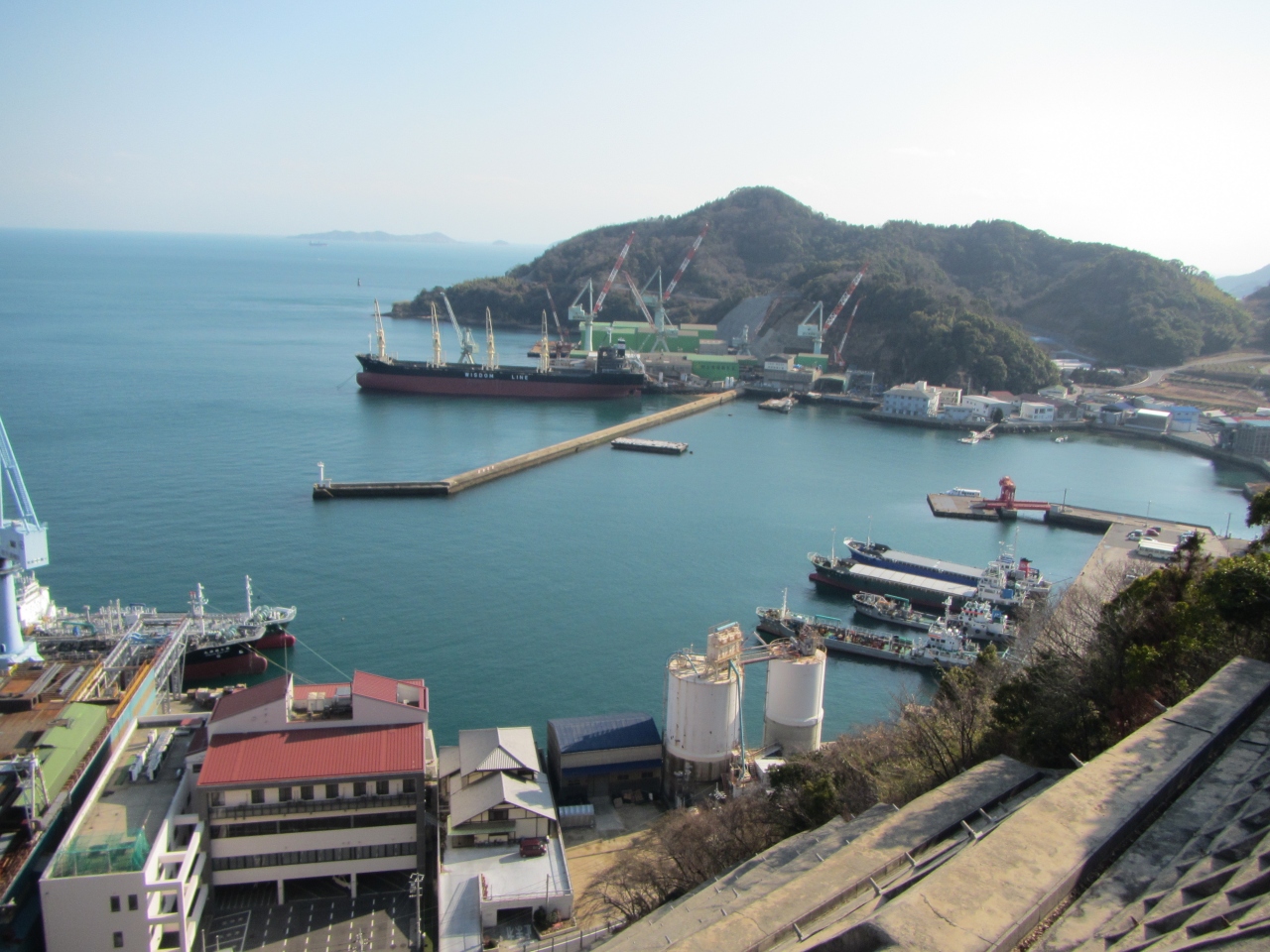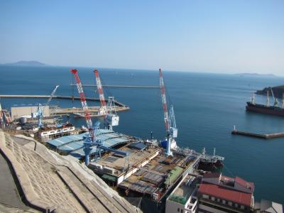 伯方島は、伯方の塩で有名ですが、この島の塩田で作っているのではありません。商品のパッケージやHPでも書かれていますが、伯方の塩は100%輸入塩で製造されています。今でも広大な塩田跡がありますが、そこでは、車エビの養殖が行われています。木浦港近くに、伯方ふるさと歴史公園があります。山の上ですので、景色は抜群です。また、港の近くには、巨大な造船所があります。